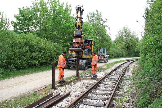 fertig. Der T33 holt den Güterwagen, mit dem das Material und die