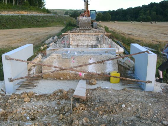 Die Betonierarbeiten an den Brückenfundamenten haben nun begonnen,