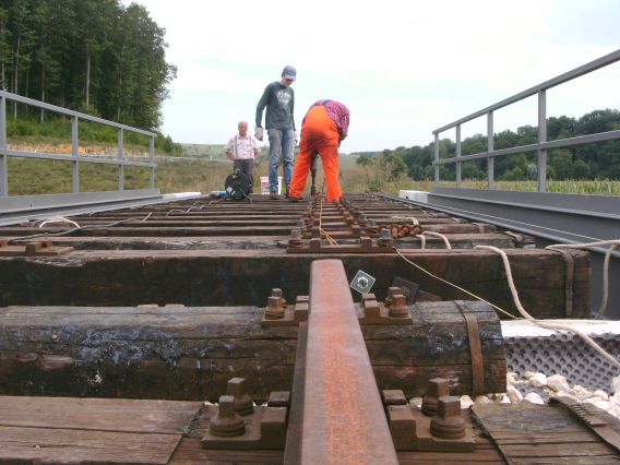 Damit die Schwellen exakt auf der Brücke liegen, müssen die