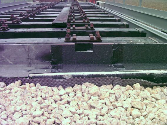 der Schotter vom Gleisbett über das Wiederlager rutscht. |