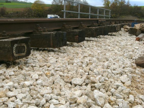 eingeschottert und gestopft ist. Die Strecke liegt ein paar Zentimeter